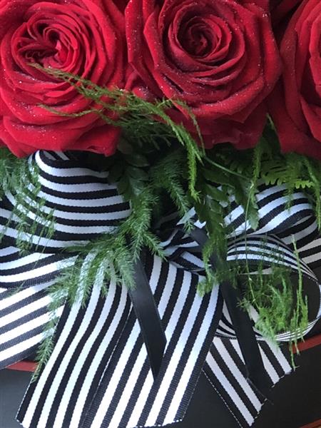 24 red roses in a luxury hatbox