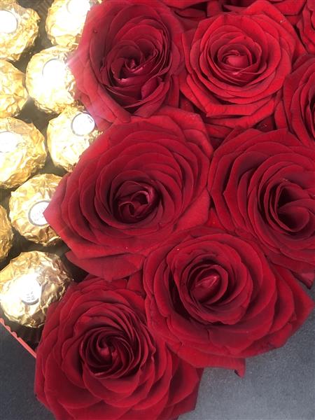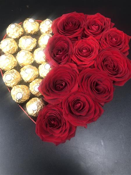 I ADORE YOU 12 LUXURY ROSES WITH CHOCOLATES IN A HEART SHAPE. STUNNING GIFT.