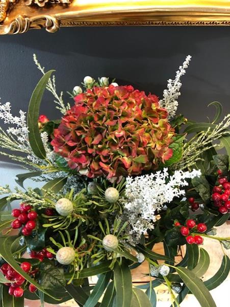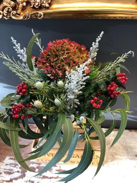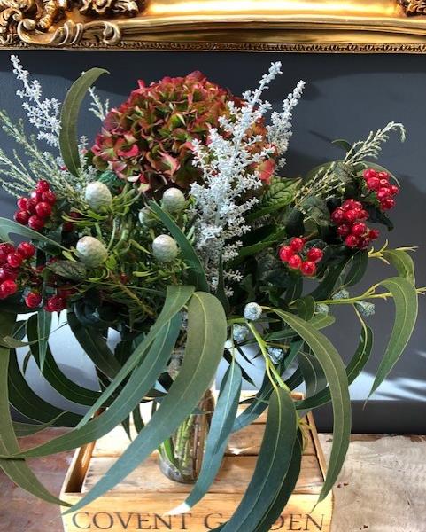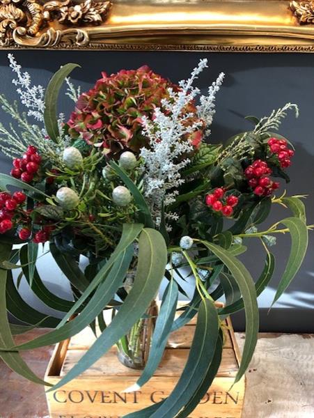A festive display of mixed foliage and hydrangea to fragrance your home at Christmas vase not included
